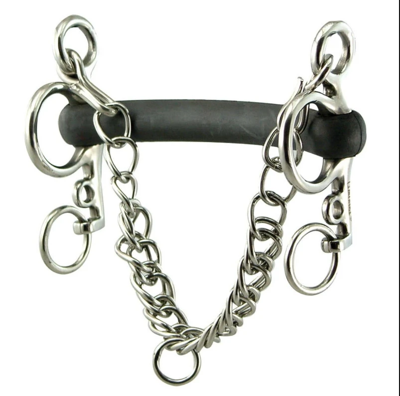The most widely used pelham as it is the kindest to the mouth. Hard rubber covered mouth cushions the bars and the mullen shaping gives space for the tongue.
